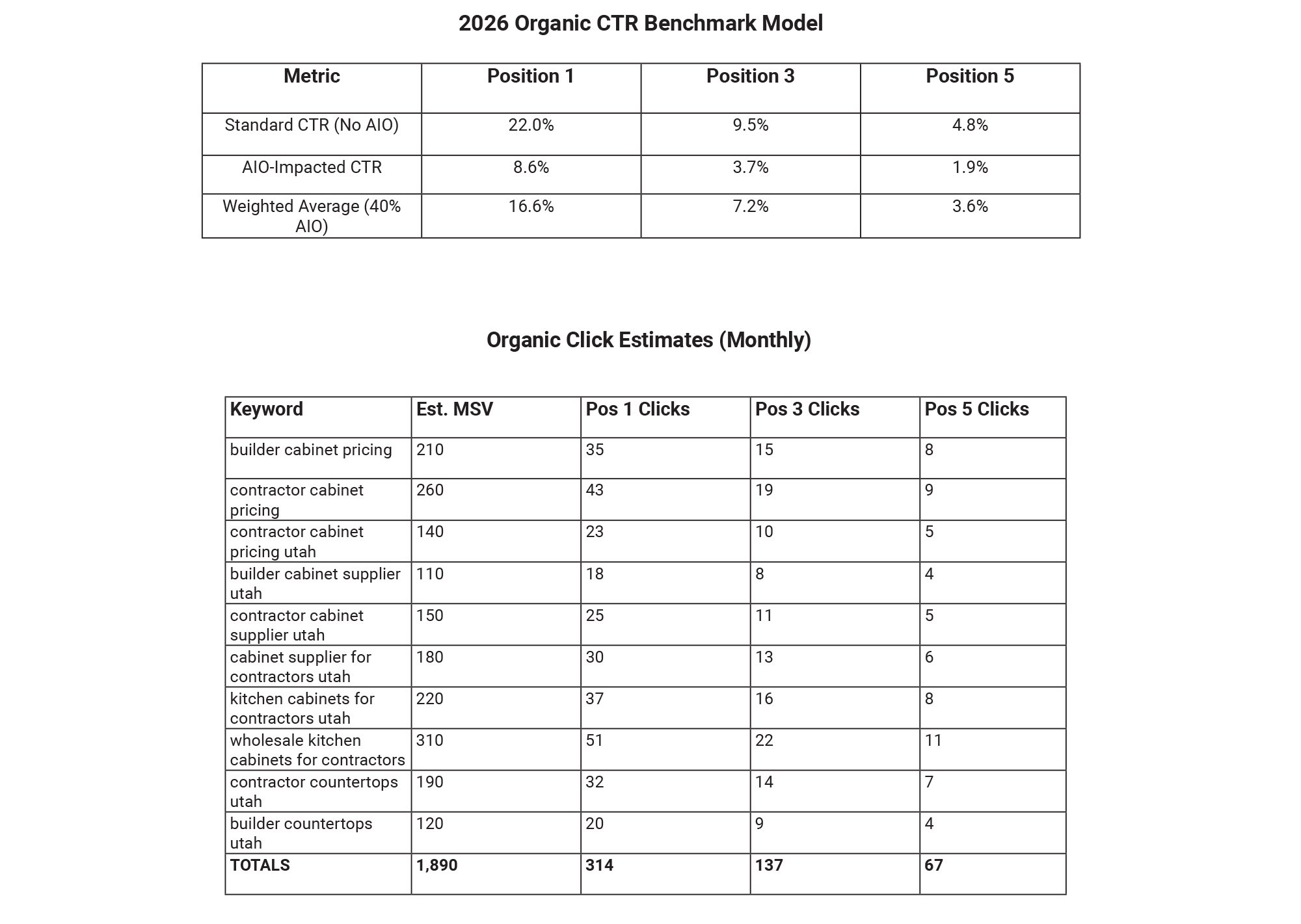 With this in mind, I conducted keyword research that focused on how contractors and builders search for cabinet and countertop suppliers in the Utah market. When I had completed my research and complied my final keyword list, I learned some interesting facts: