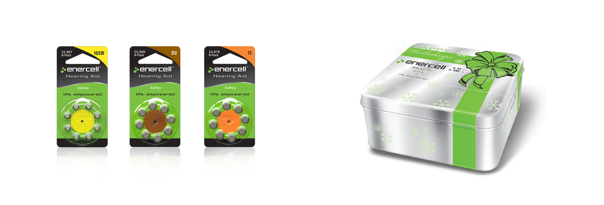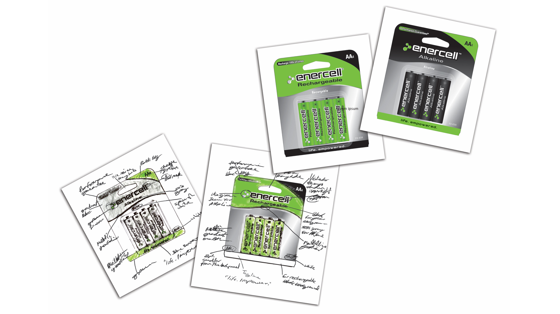 A total of 250 plus skus were created to support the launch of the Enercell re-branding. The bold, visual design of Enercell packaging communicates versatility and relevance to the target audience. Boasting the tagline "life. empowered." this wide-ranging campaign included several highly-praised packaging designs for a variety of batteries and essential power accessories.