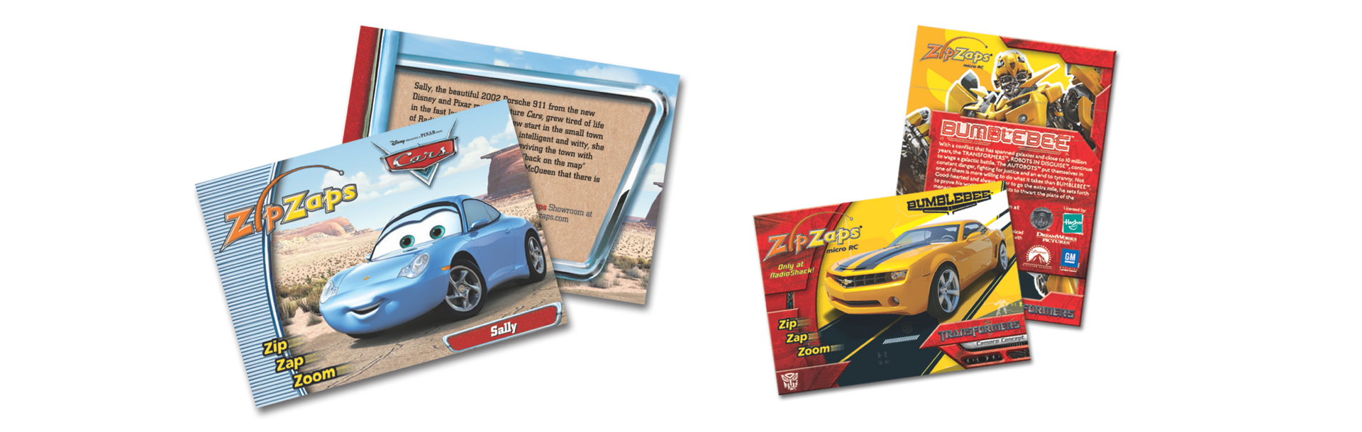 The Zip Zap product line was designed to tie into the Cars and Transformers movies.