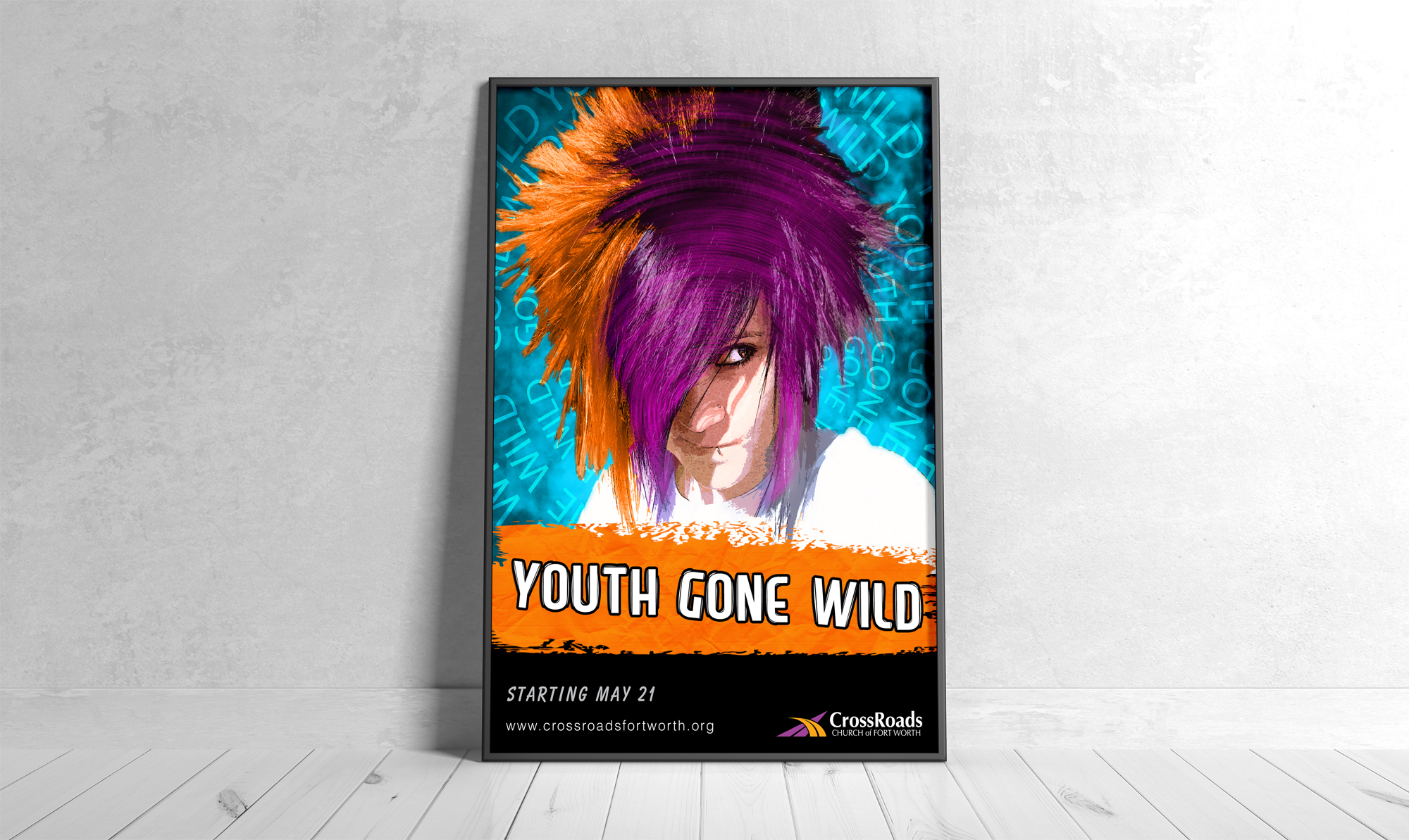 This colorful poster was designed for a sermon series addressing troubled teens, targeting a younger demographic. The visual strategy centered on audience relevance— using a close-up portrait of a teen from punk rock culture to authentically reflect the identity and experiences of the intended audience.