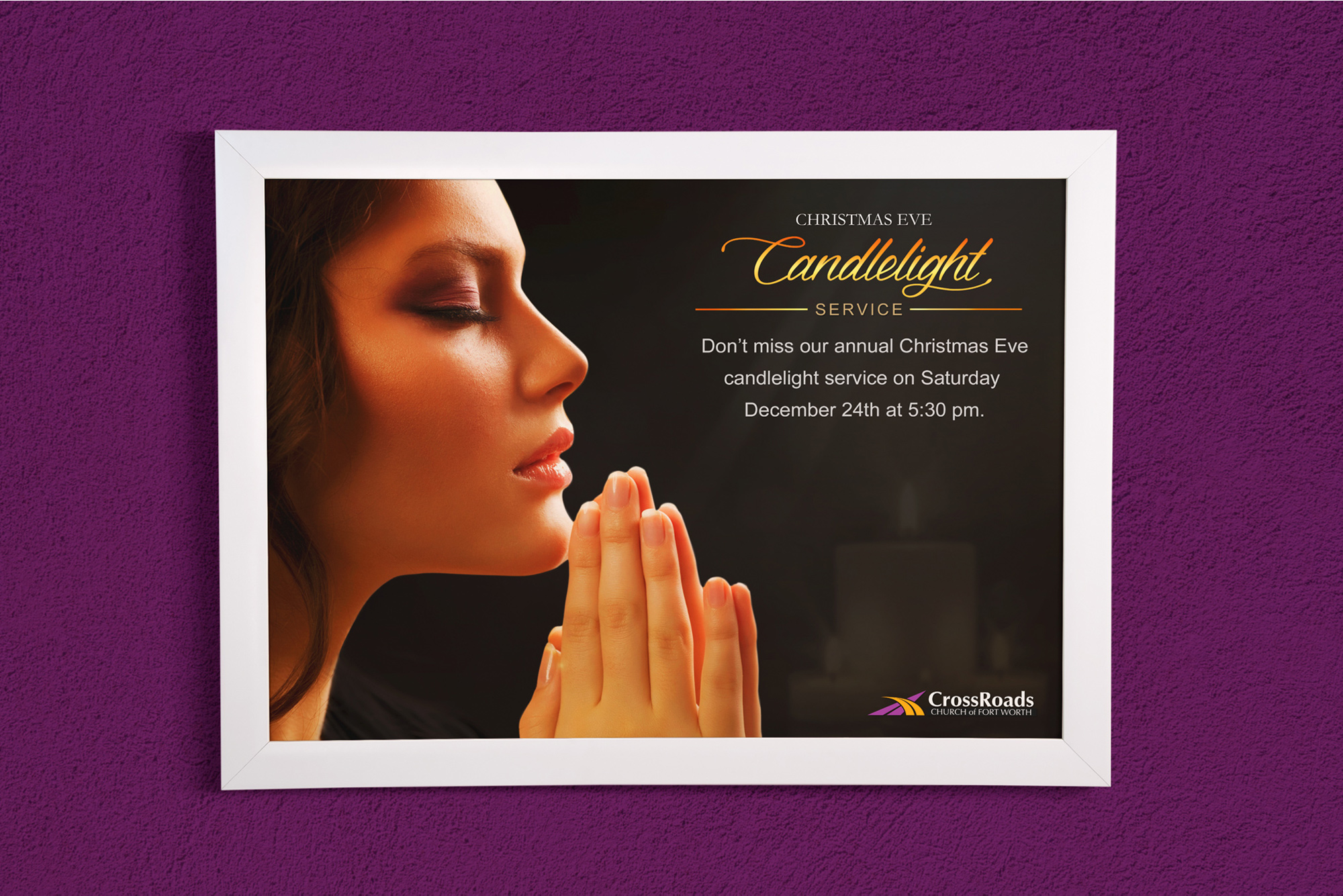 This campaign visual was developed to strengthen audience emotional engagement around a seasonal event by visually reinforcing the theme of reverence and worship. Warm tones and soft lighting effects were strategically applied to evoke a sense of intimacy and reflection, aligning with the campaign’s messaging and target demographic preferences during the holiday period.